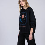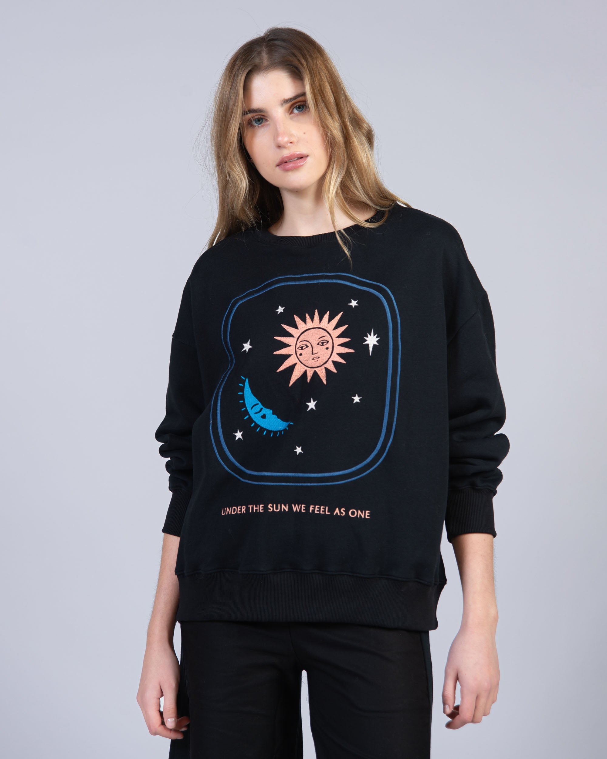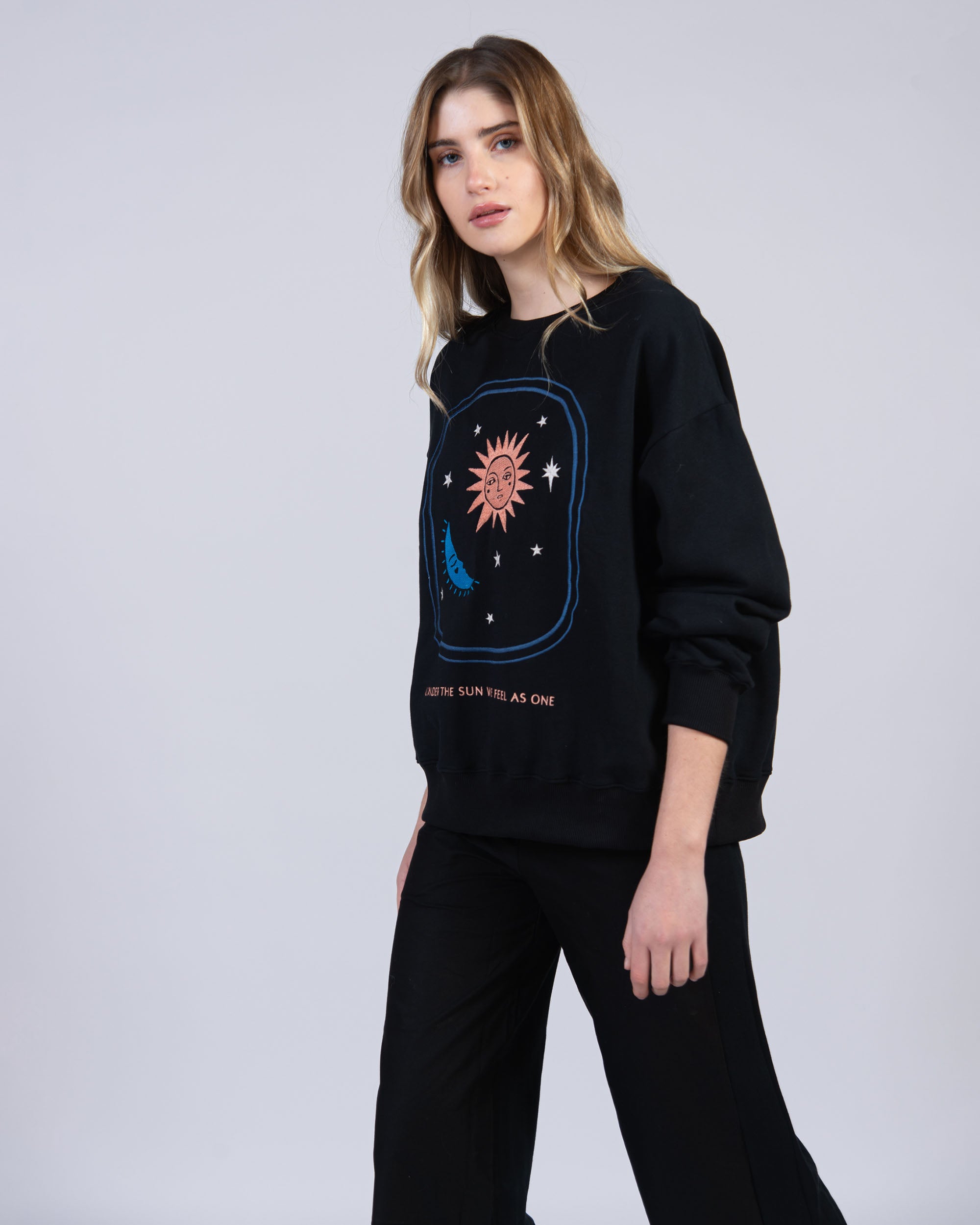 Stay warm and fashionable in this soft cotton sweatshirt from Cape Cove, crafted in Portugal with a loose and casual shape and dropped sleeves. The embroidered emblem represents togetherness under the sun.