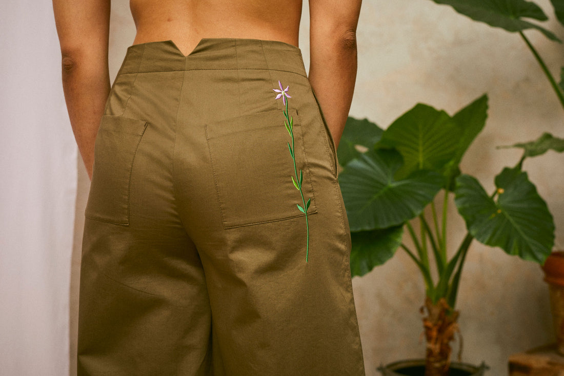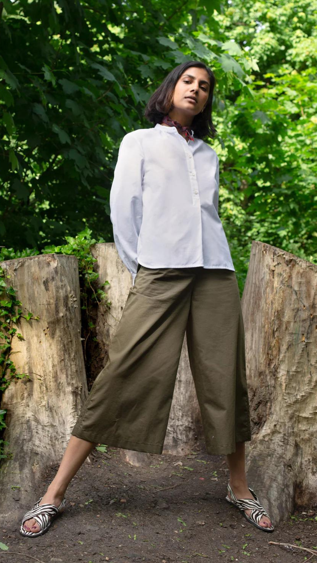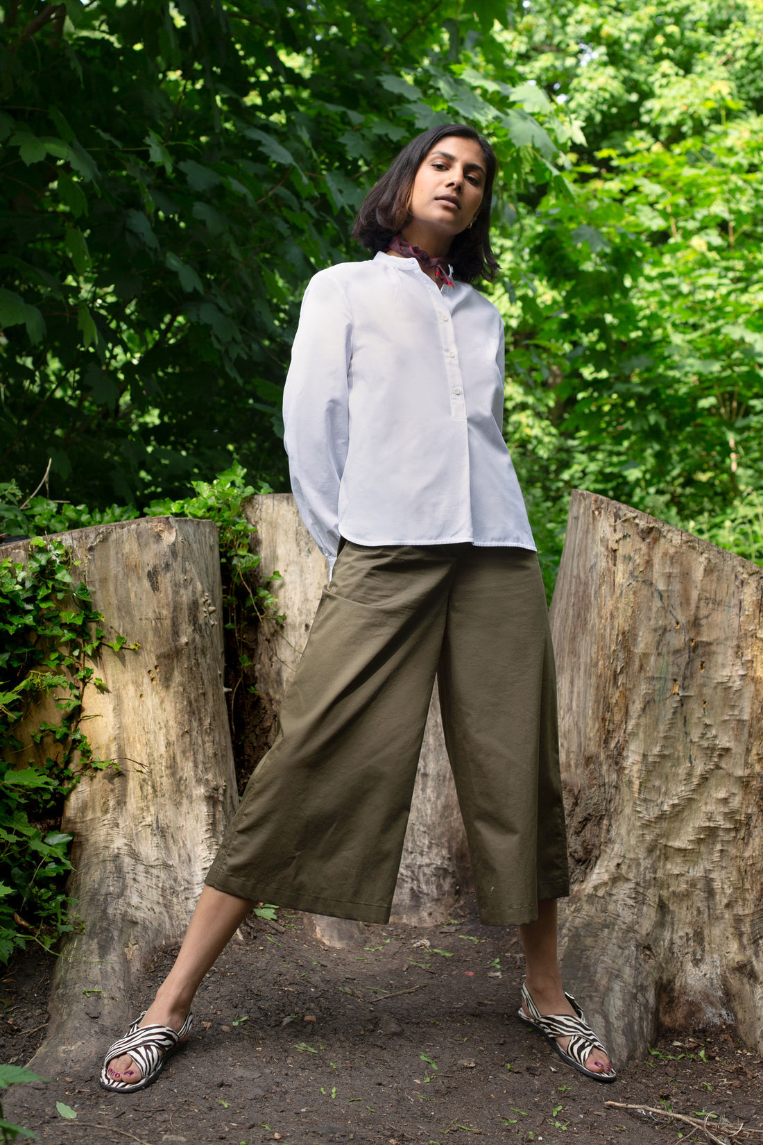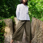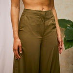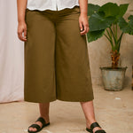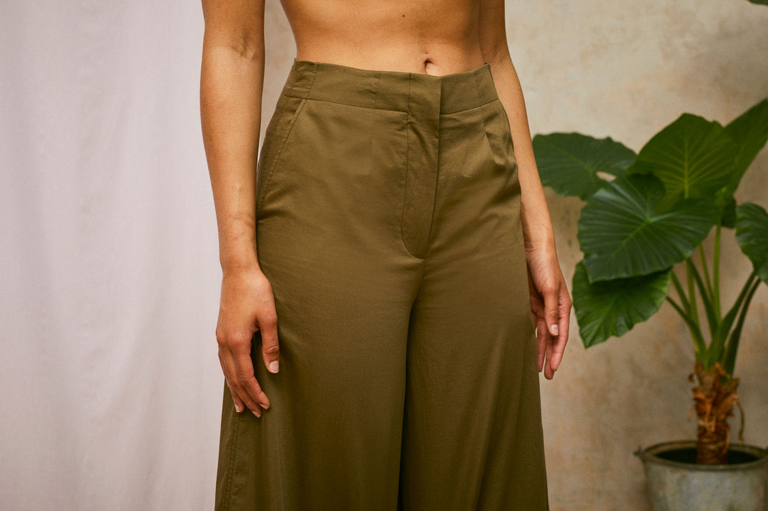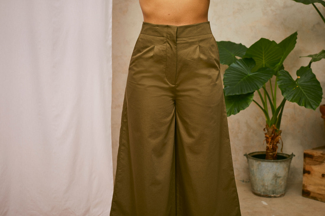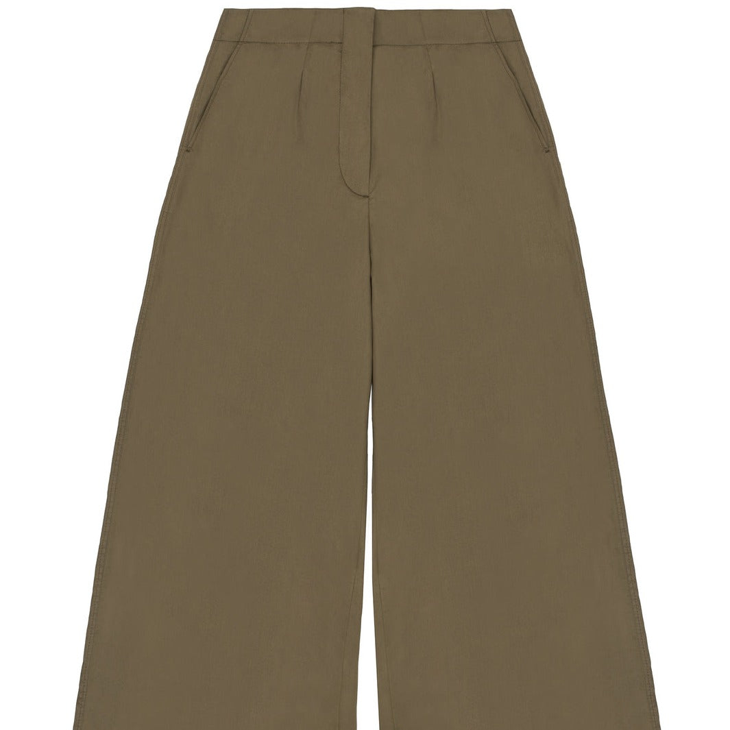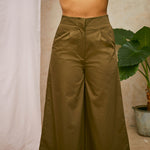 Amelia Wide Leg Culotte Trouser in Khaki Deadstock Cotton