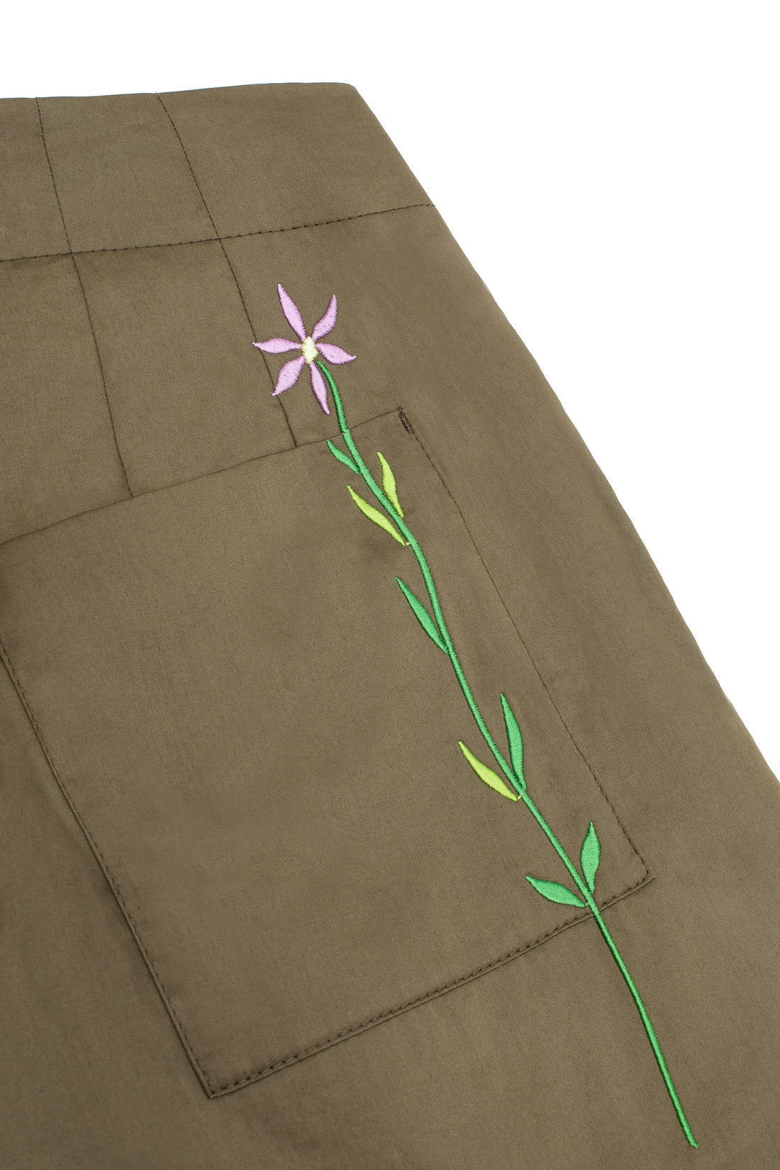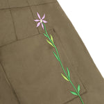 Finished with a hidden corozo button and zip-fly fastening, back patch pockets, khaki topstitching and our signature embroidered flower motif, they’re a wardrobe mainstay.