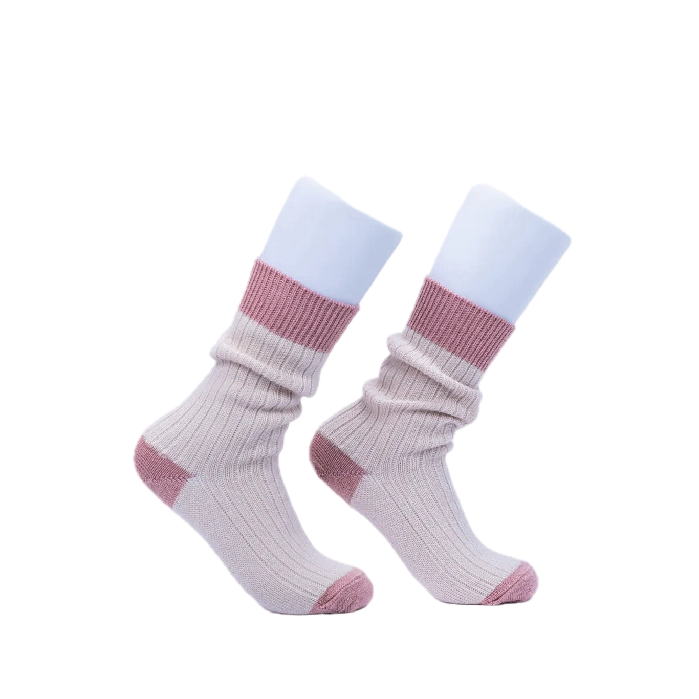 Soft merino socks in Natural with Tea Rose accents
