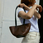 The Elwin Brown Leather Bucket Bag by LPOL blends timeless elegance with modern versatility. This larger version of the Mini Elwin is crafted from supple, mellow pebble grain vegetable-tanned leather, making it the perfect leather handbag for everyday use.