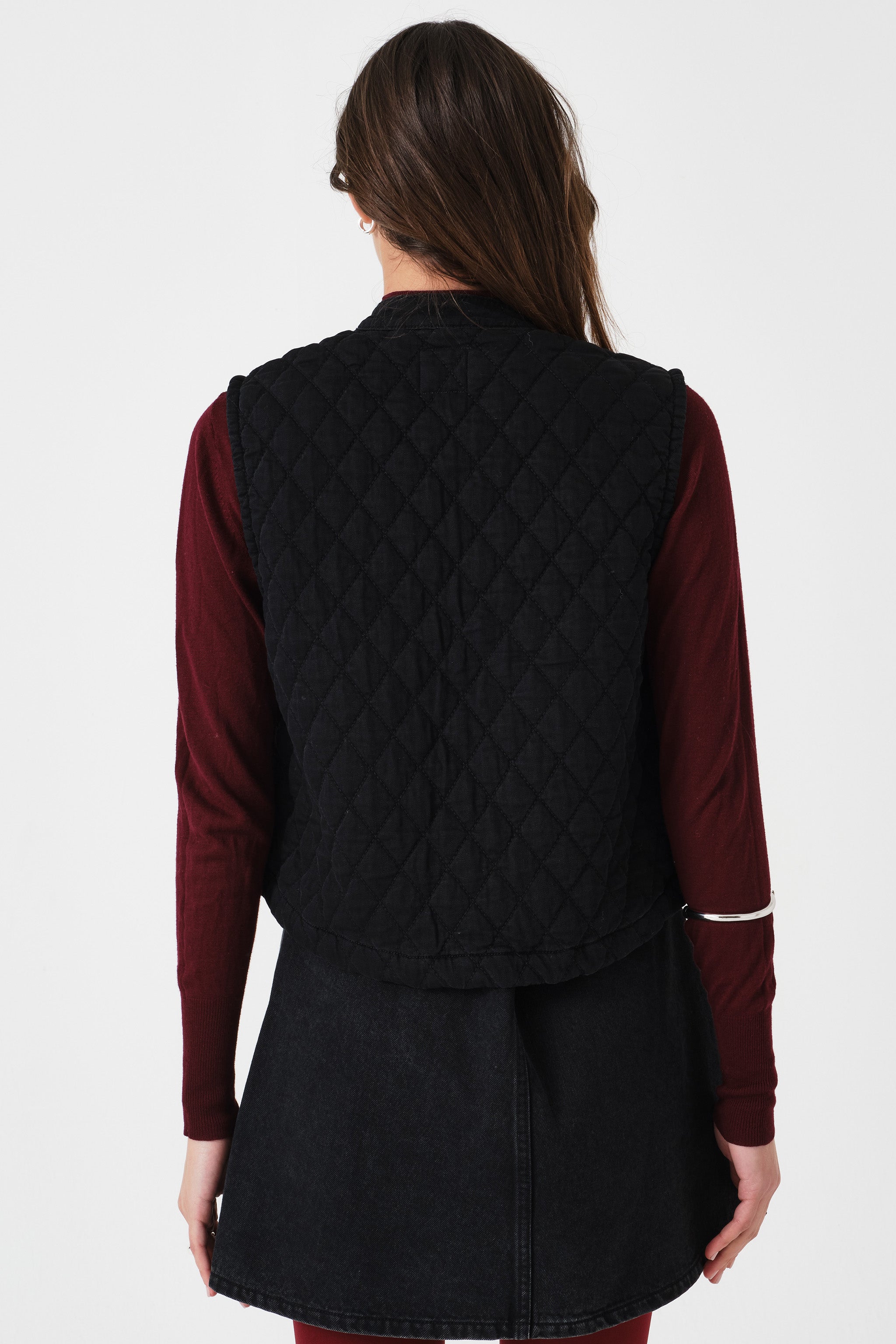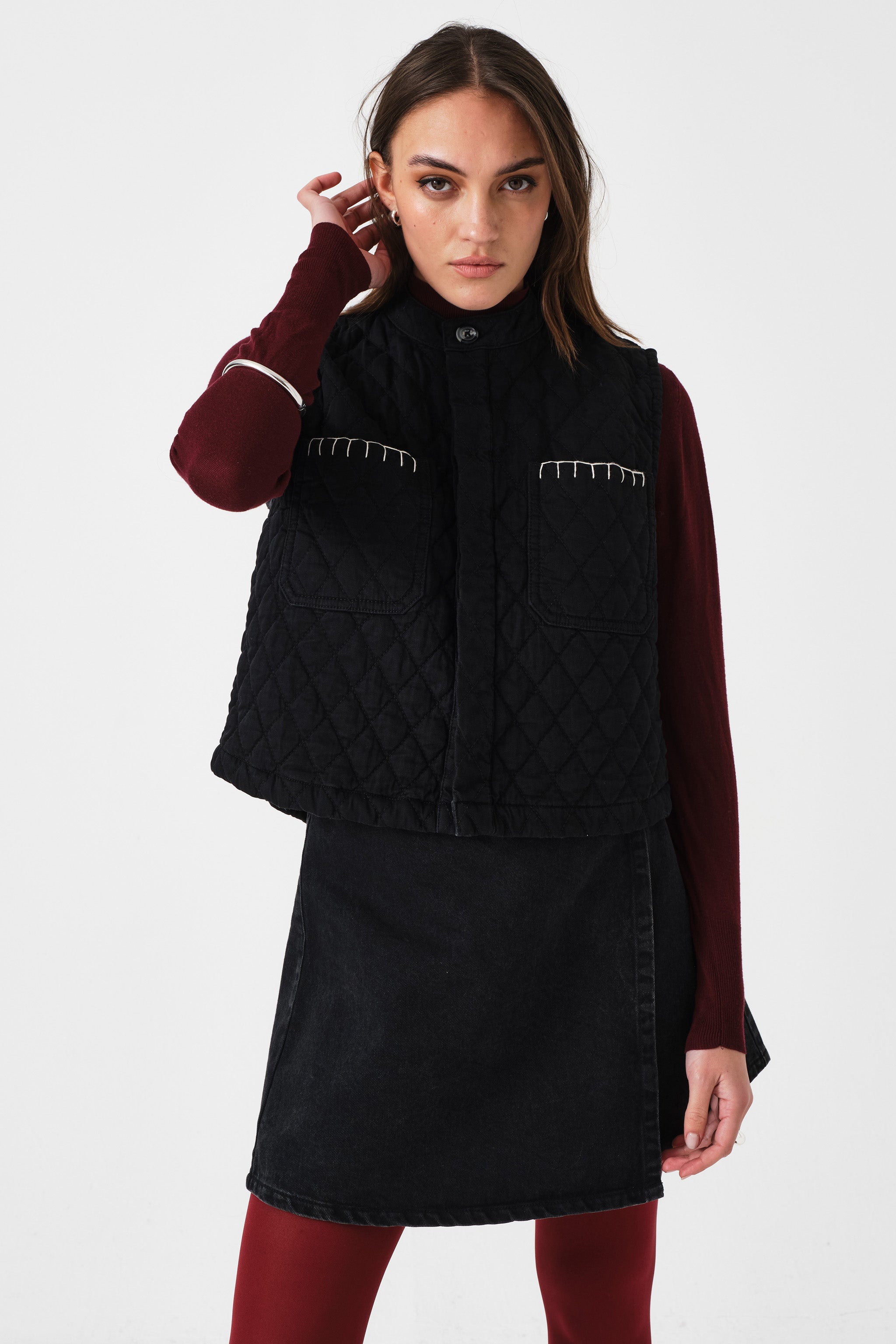 The Pablo Quilted Denim Vest in Black by seventy + mochi transforms their iconic waistcoat into a quilted midweight layer, offering structure, softness and year-round versatility.
