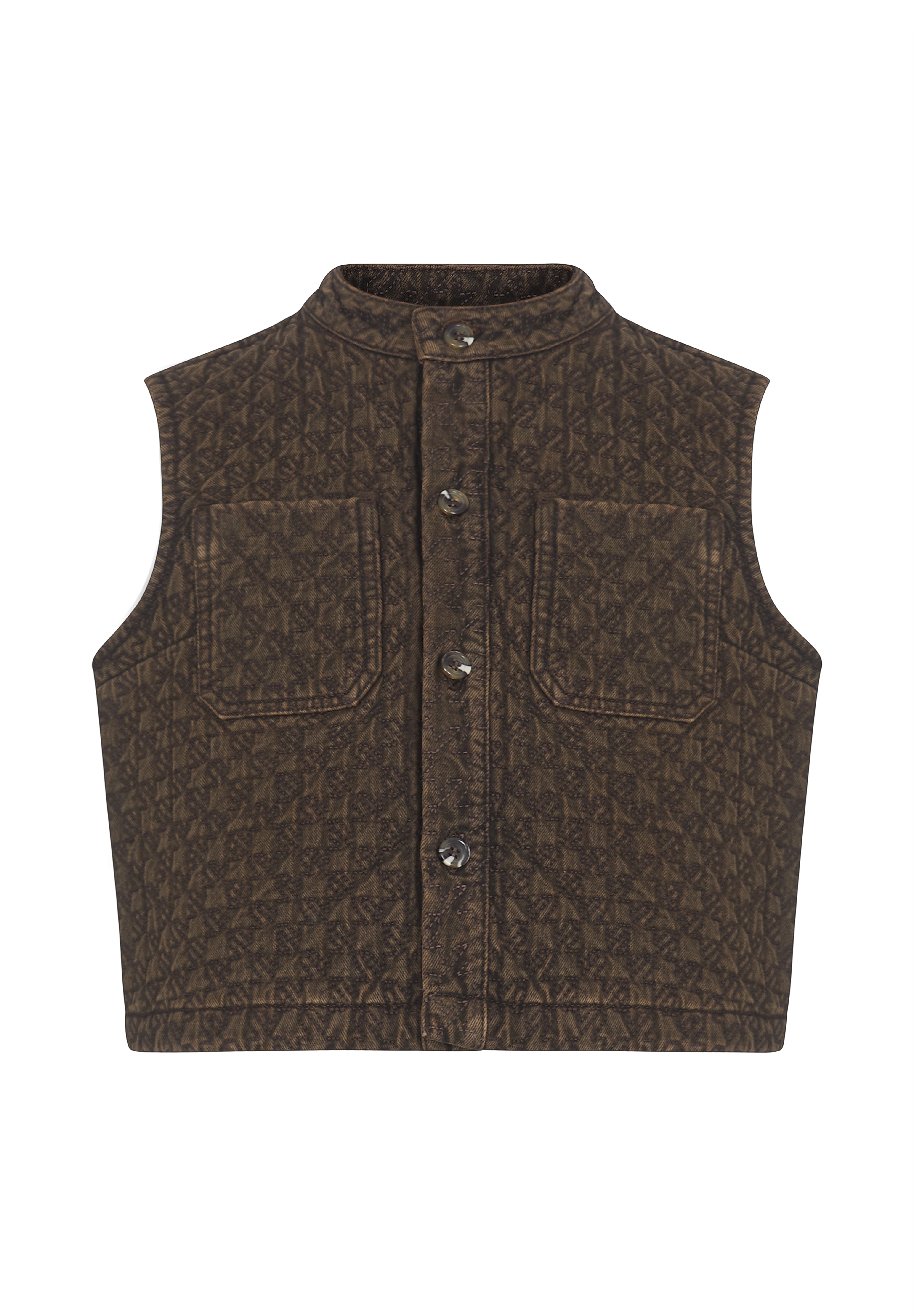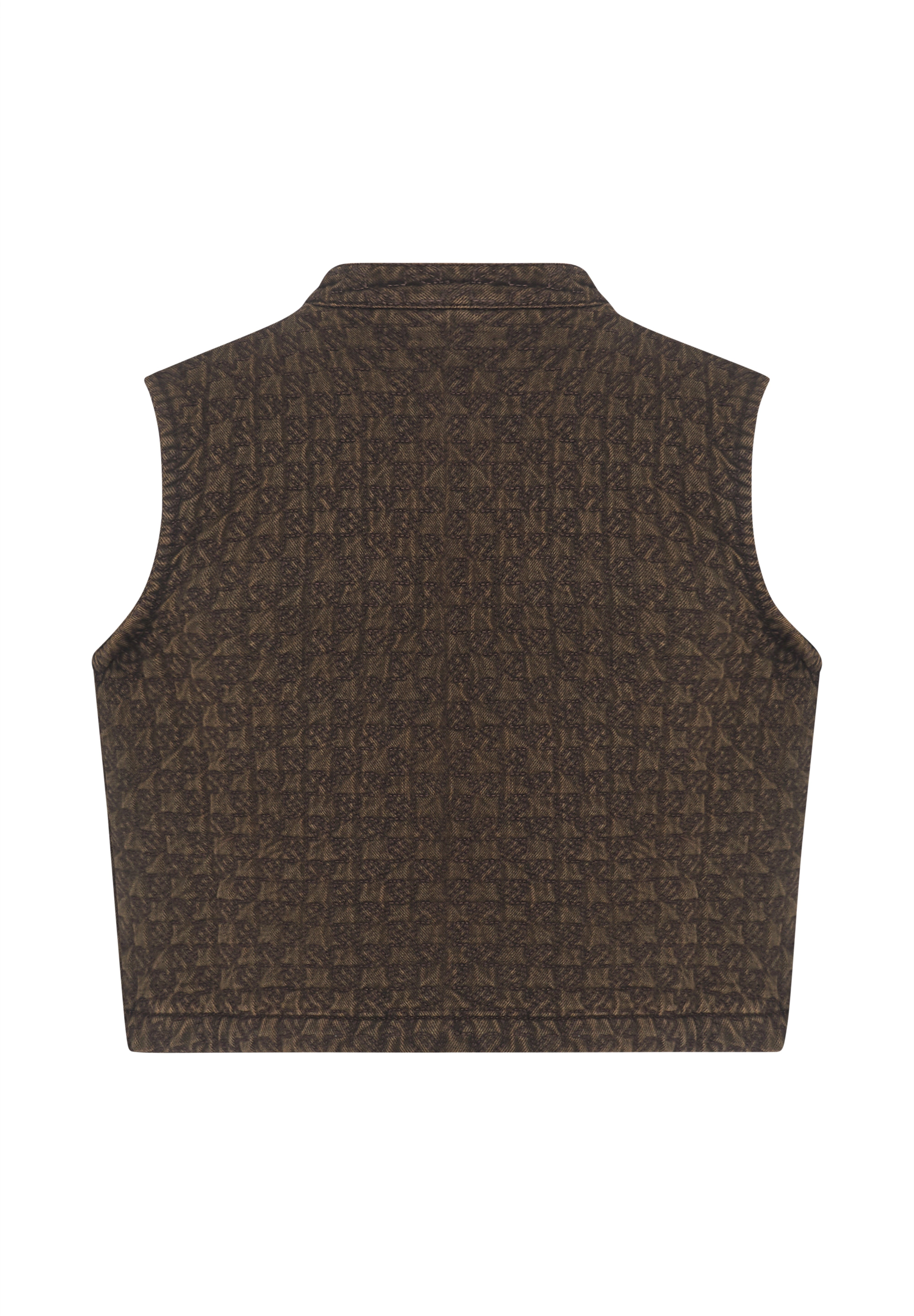 Pablo Quilted Denim Vest in Houndstooth Cacao