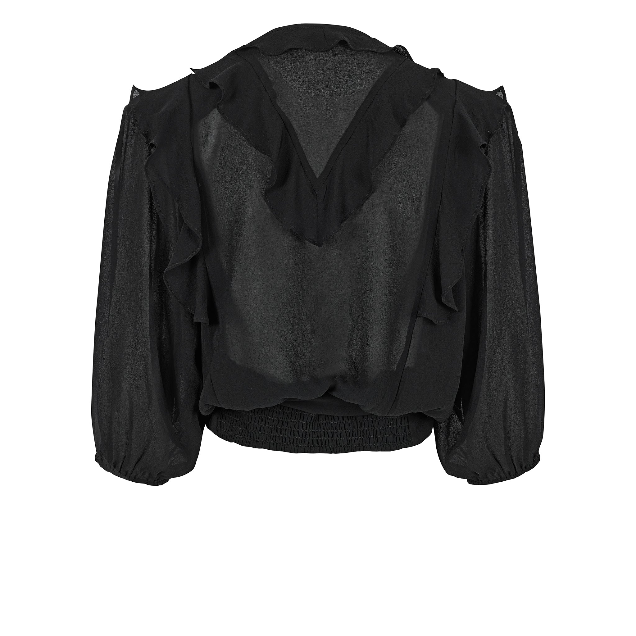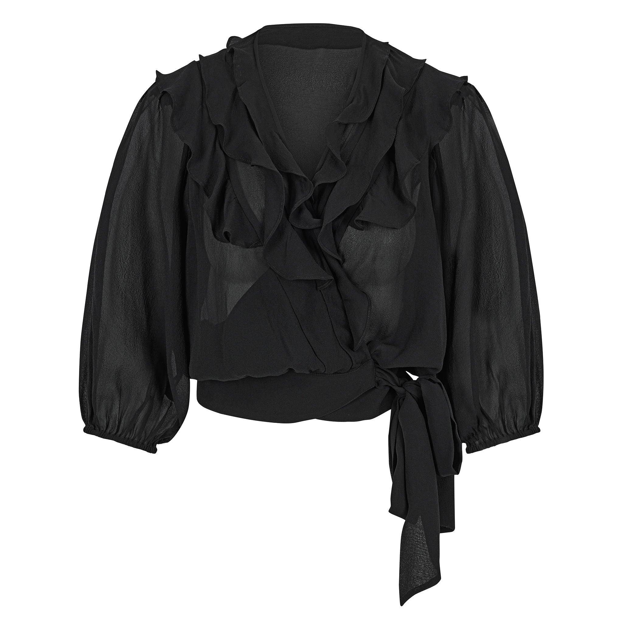 Effortlessly elegant with a lightweight, semi-sheer viscose georgette fabric, the Phoebe blouse boasts a flattering wrap silhouette and romantic frills on the neckline and yoke. 3/4 sleeves add a touch of coverage with a soft shoulder pad for extra lift.