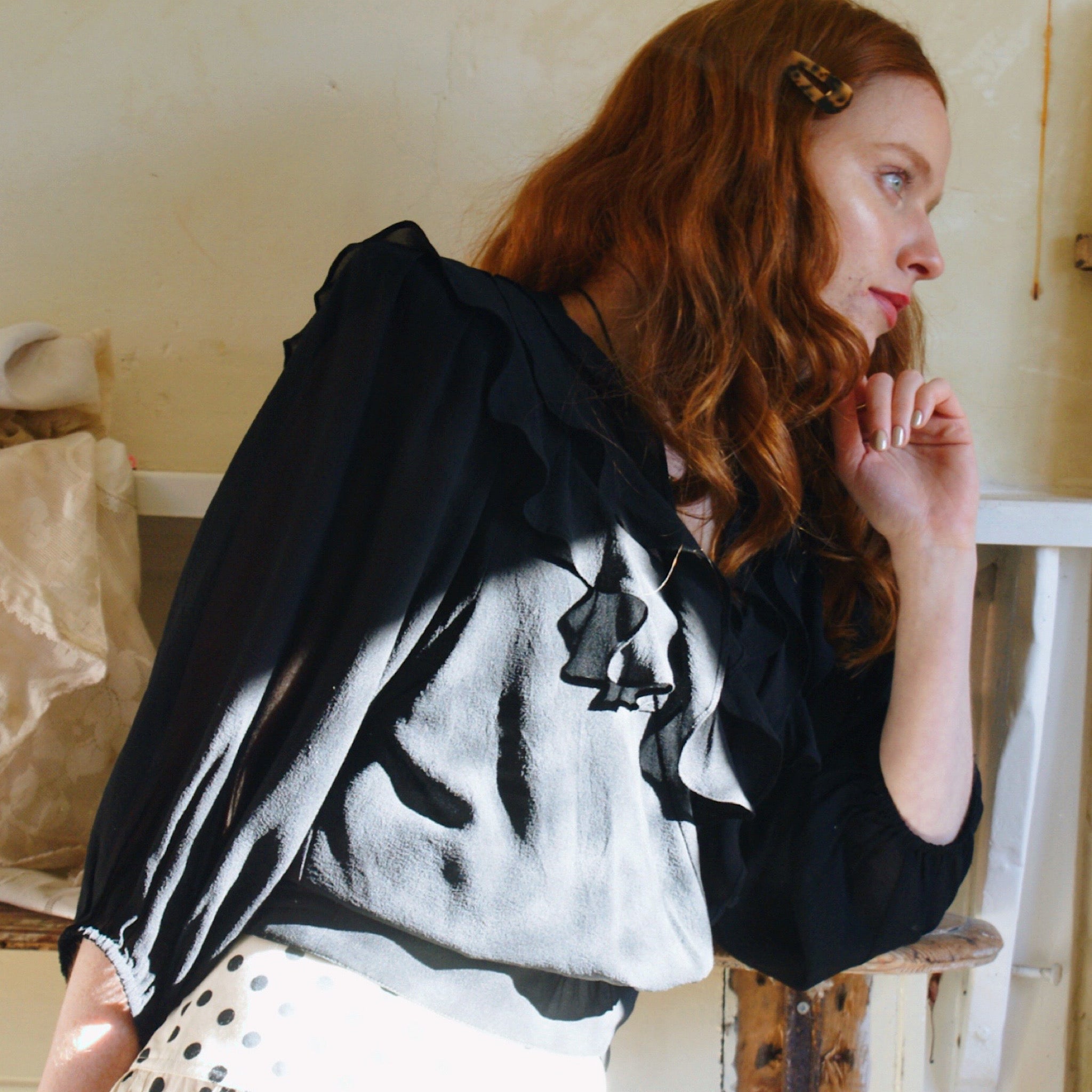 The Phoebe blouse is perfect for creating a soft, romantic look, whether paired with high-waisted jeans or worn with the Emily spot skirt for a chic special event, bringing an effortless look to your wardrobe.