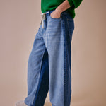 Made from a blend of two blue denim shades, these jeans bring a unique, tonal look that's both classic and contemporary. The contrasting panels add subtle dimension and visual interest.